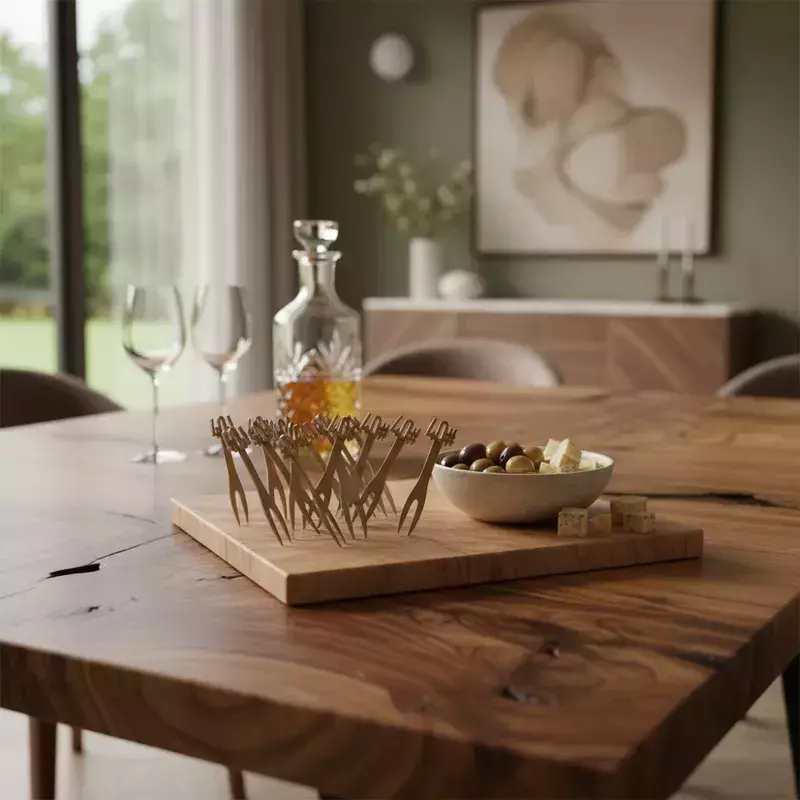 Descubre la elegancia y funcionalidad de nuestros Pinches para Picada Copetín. Con una medida aproximada de 8 cm de largo, estos pinches son ideales para servir tus aperitivos de manera sofisticada y práctica. Perfectos para reuniones, fiestas o simplemente para disfrutar en casa, cada pinche añade un toque especial a tus picadas.