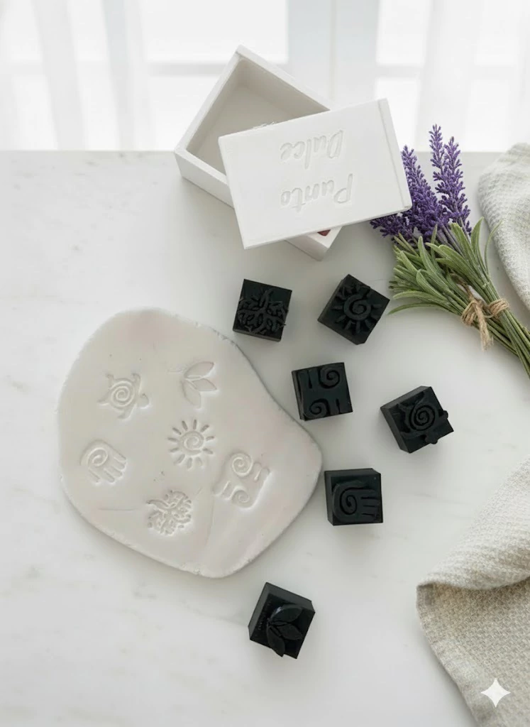 Transforma tus proyectos creativos con nuestro Set Caja de Sellitos Pampa. Este conjunto incluye 6 sellitos de aproximadamente 2 cm, ideales para trabajar con arcilla, cerámica, pasta de azúcar, porcelana y más. Cada sello está diseñado para ofrecerte precisión y detalle en cada estampado.