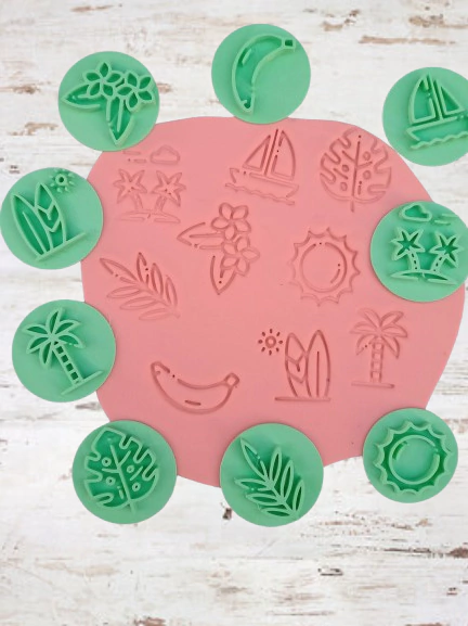¡Añade un toque vibrante a tus proyectos creativos con nuestro Set x 9 Sellos de Verano! Este maravilloso set incluye nueve sellos únicos que capturan la esencia del verano, perfectos para estampar en tus obras de repostería, cerámica y manualidades.